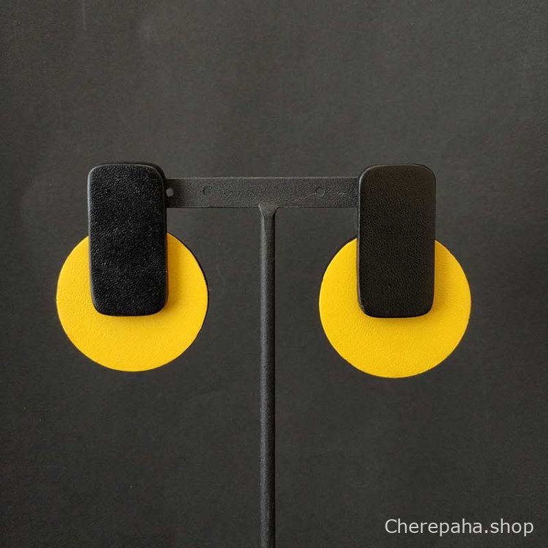 Серьги из кожи КРУГ + ПРЯМОУГОЛЬНИК