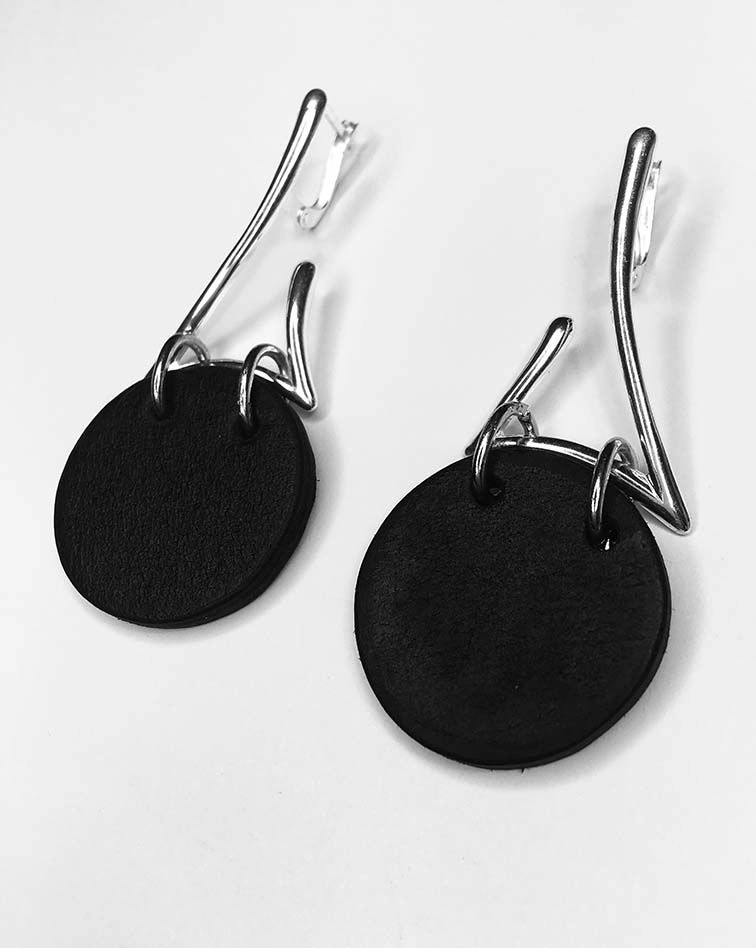Серьги из натуральной кожи, серебрение 12 мкм.