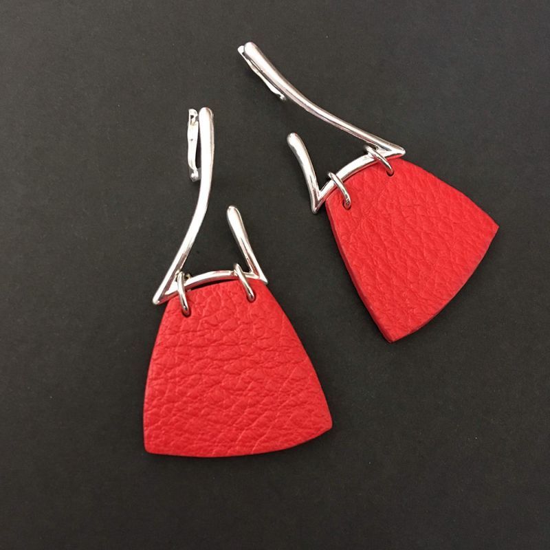 Серьги из натуральной кожи, серебрение 12 мкм.