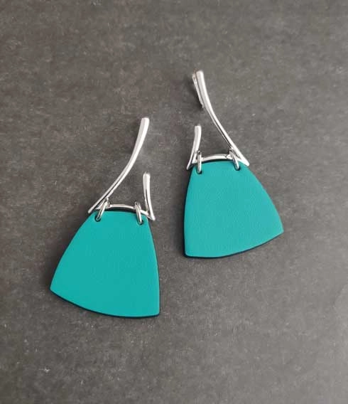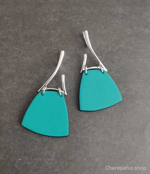 Серьги из натуральной кожи 2-х сторонние, серебрение 12 мкм.